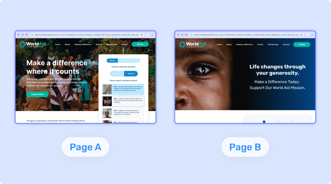 For teams ready to take insights even further, Studio 2.1 also supports A/B testing through your analytics tools. Create two versions of a donation page, perhaps one with a different headline or suggested amount and track which version leads to more donations.